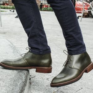 Three-eyelet chukka in Chromexcel leather Leather lined with cushioned insoles Goodyear storm welt Leather sole with Vibram rubber half sole Handmade in USA Available in Black, Oxblood, Loden Green BEACON | Style # CH6CXL | Last # NW102 Keep your new boots looking great with our cedar shoe trees and Saphir shoe polish. Read more about this amazing Horween Chromexcel leather on our blog.