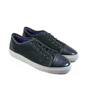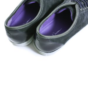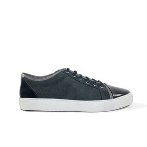 Low-top sneaker in gray suede Polished leather heel and toe in burgundy ombr Gray rubber sole Handmade in Portugal GOTHAM II | Style # SN2 SDE | Last # NW201
