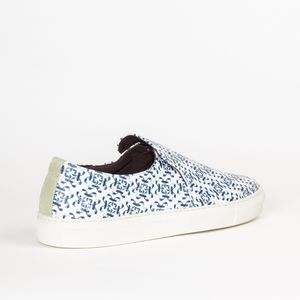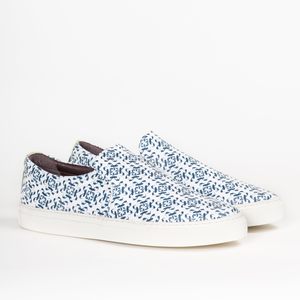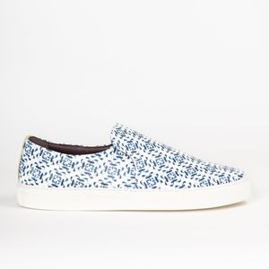 Slip-on sneaker in soft pebble grain leather Contrast accent on heel in pistachio suede White rubber sole Hidden elastic webbings for excellent fit Handmade in Portugal Available in Black, Delft, Oxblood TOMPKINS | Style # SN8PBL | Last # NW201 The Tompkins sneaker is also available in men's sizes.