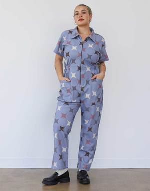 The signature Utility Suit by Noble in a custom SS25 Sparkle print. Made in Peru from durable yet buttery soft GOTS certified organic Pima cotton canvas. Features a cropped leg and cinched waist. Details - Runs true to size. - 100% GOTS certified Organic Pima Cotton Canvas - Pre-washed and pre-shrunk for a super soft feel - Machine washable: wash cold and hang dry - Made in Peru