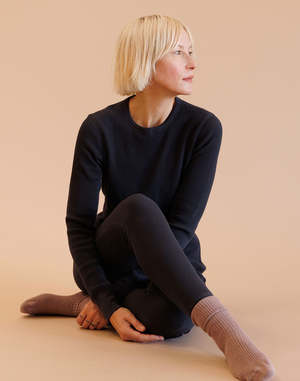 These Waffle Long-Sleeve Tops are made with the softest organic cotton and eco-friendly dye. Our waffle fabric is breathable, buttery soft, and durable, keeping you the perfect amount of cozy without overheating. They're perfect for everyday wear with jeans, worn as base layers in the winter, or paired with the Waffle Bottom for bedtime. Details Molly is 5'7 and wearing a size Small. Bust: 32"/ Waist: 26.5" / Hips: 36" - Runs true to size w/ stretch. - 100% GOTS certified Organic Pima Cotton - Pre-washed and pre-shrunk for a super soft feel - Machine washable - wash cold + air dry - ECO-friendly dyed