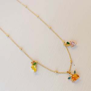 Bijou conu pour briller et durer. - Chane dlicate - Breloques en forme de fruits plaques or 14 carats - Longueur de 19 pouces