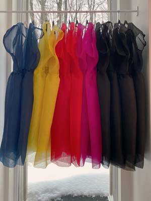 The feminine yet simple and refined silhouette of the Robe Tulipe is crafted from ultra-light and delicate silk organza. It expresses both sophistication and edge. Can be layered or styled on its own. - Relaxed fit - Hangs freely at the hips - Voluminous gathered skirt - V-neckline - 100% silk (fully lined in same fabric) - Wear with a bodysuit or slip - Silk has natural properties suitable for year-round wear; it offers excellent thermal stability, being both insulating and breathable. - Dry clean only Length: 38 inches One size fits up to size 18. For custom sizing, you will be contacted after your order to confirm your measurements (bust and hips) to ensure a perfect fit.