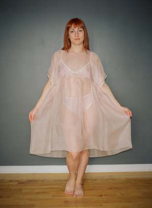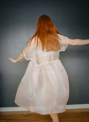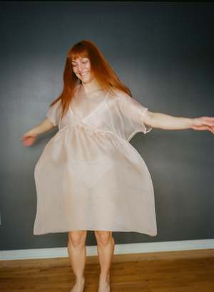 The Tulip dress from Noemiah is a fantasy come to life. Featuring a voluminous gathered skirt with v-neck and short sleeves, the Tulip dress showcases the designer's expertise at combining elegant simplicity with an awe-inspiring maximalist flare. Made from a luxurious silk organza, this dress is incredibly lightweight, breathable and will only get more comfortable with every wear. The semi-sheer gloss of the fabric makes the Tulip dress extraordinarily fun to play around with layers. Pair it with your favourite jeans and top to add a little drama, or pair over your best lingerie for a daring, sexy look. There's so many possibilities to explore with this dress and we encourage every one! One Size Fits Most (Approx. Up to Size 18) 100% Silk Organza Fabric does not stretch Wash by hand in cold water, hang to dry, or dry clean. Also available in Fuchsia, Black, Mushroom and Blue Made in Montreal