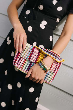 This bracelet is crafted with lampwork glass beads in a heart shape. Each bead is formed by hand over an open flame, resulting in a smooth, puffed heart with a distinct point. The curated assortment of mint, aqua, amber, lavender, lime, and clear glass beads creates a soft, varied color palette. The bracelet is strung on durable elastic for easy wear and a comfortable fit. Petite accent beads are incorporated between the heart shapes. This handcrafted piece adds a subtle, colorful detail to an outfit. Handmade lampwork glass heart beads in a mix of colors. Strung on durable elastic for a comfortable, flexible fit. Lightweight construction for everyday wearability.