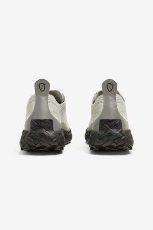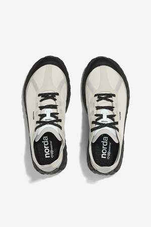 Built for ultra-distance trail running, the Norda 001A in Cinder combines a seamless Bio-Dyneema upper with an Arnitel TPEE midsole for lightweight cushioning, strength, and long-wear performance. A custom eTPU insole and Vibram Litebase Megagrip outsole deliver comfort, traction, and durability across varied terrain, while the dynamic lace-lock system and reflective detailing complete the technical construction.