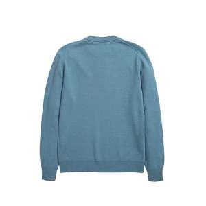 LIGHT STONE BLUE A sweater knitted from Italian merino lambswool yarn. It has a soft hand-feel and features set-in sleeves, a single rib collar, hem and cuffs. Style-no: N45-0345 100% merino lambswool 7 gauge 1ply Regular fit Italian yarn Made in Italy