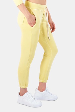 - Color: Pigment Goldfinch - French terry fabric - Cropped profile - Relaxed fit - Elasticated drawstring waist and cuffs - 100% Cotton - Made in USA - Style #: 9158-FTU | Women's NSF Sayde Sweatpant in Pigment Goldfinch