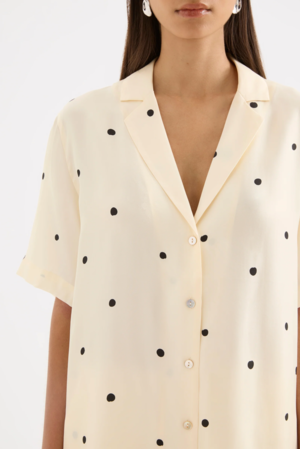 - Lyocell blend fabrication - Lightweight with a smooth, drapey hand feel - Exclusive Xander print - Oversized shirt - Traditional shirt collar - Front button opening - Shell buttons The Xander Shirt is designed in Nude Lucy's exclusive Xander print from a lightweight lyocell blend fabrication. This oversized shirt has a smooth, drapey hand feel and features a traditional shirt collar, front button opening, and shell buttons.