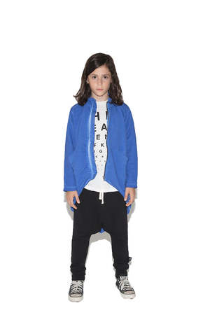 This statement-making jacket is sure to make sure little one stand out amongst the crowd. The long pointed back hem gives the piece its "tail" effect while the minimalist collar keeps it sharp and clean, and asymmetric seams add playfulness. Don't let the avant-garde design fool you - this jacket is endlessly comfy and comprised of the softest cotton. - Color: Dirty Blue - 100% Cotton - Machine Wash Cold Designer NUNUNU