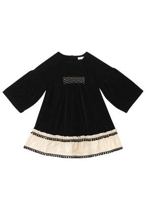 The smocking, trumpet sleeves, and delicate pom pom trims give this velvet tunic dress a bohemian appeal. - Color: Black - 95% Polyester, 5% Spandex - Style #: DS002 Productcode OAKSF7-5 Designer OAKS OF ACORN