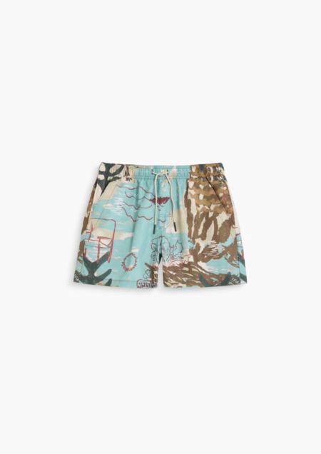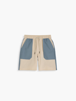 Beige and blue block contrast swim shorts in woven seersucker fabric. Features an elastic waist, two front patch pockets, one back pocket, and mesh lining for comfort. Designed with a long leg length and mid-rise fit. Specifics: - 100% polyester - Woven seersucker - Elastic waist - Two front patch pockets, one back pocket - Mesh lining - Designed in Stockholm Fit: - Mid-rise - Long legs - True to size Care: - Machine wash at 30C gentle cycle inside out with like colors - Wash in wash bag - Do not bleach - Do not tumble dry - Do not iron - Dry clean - Rinse in freshwater after use - Dry away from direct sunlight - Sunscreen and chlorine can cause discoloration
