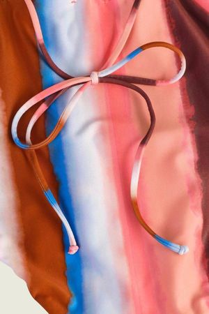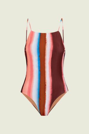 The Moody Lines Costa Bathing Suit is a high-cut square neck silhouette patterned with brush strokes in hot-n-cold hues. It turns to reveal an open back framed by crisscrossing tie straps. Made from an UV-protective stretch fabric with a soft sheen, containing recycled polyester sourced from ocean waste. DETAILS: - High Cut Square Neck - Low Cut Back - Fully Lined - Adjustable Shoulder Straps with Alternative Tie in The Back - Designed in Stockholm and Made in The EU - Made from 95% Recycled Polyester, 15% Elastane SIZE + FIT: - Fits True To Size - Model is 175 cm / 5'9" and wears size S. - For more sizing details, please refer to the measurements in the size chart below.