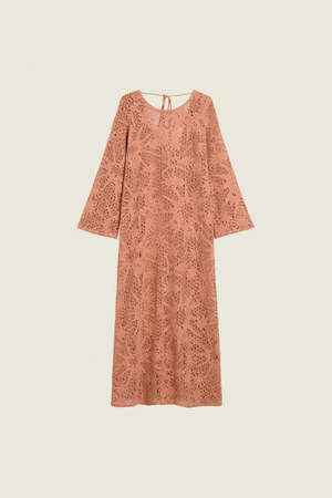 The Astrea Grace crochet dress features a see-through crochet pattern that echoes the warmth of the blazing summer sun. Trumpet sleeves and a scooped back with ties at the neck balance its ground-sweeping lengths; clashing Scandinavian sophistication with a free-spirited bohemian allure. DETAILS: - 90% Cotton, 10% Polyester - Open Weave Crochet Design - Scooped Front and Back - Ties At Neck - Trumpet Sleeves - Designed in Stockholm, Made in Portugal - Care: Gentle or Cold Wash Cycle Only. Do Not Bleach, Dry Clean or Tumble Dry. Iron On Reverse At Low Temperature. Lay Flat To Dry. SIZE + FIT: - Relaxed Fit - Full Length Style - Fits True To Size - Model is 177 cm/5'10" and wears size S.