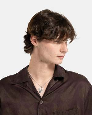 Octi Ocean Island Pendant in 925 Silver and Enamel The Ocean Island Pendant is a cable chain paired with a asymmetric cut-out pendant all set in a polished 925 silver. The hand-drawn linework and irregular form of the pendant draws from natures patterns and textures. - 925 Silver. - Made in the UK. - ICB-S02.