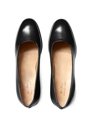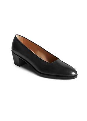 Inspired by the chic Sciure, Milan's original Ladies-who-lunch, this classic pump features a rounded toe and block heel in a sleek calfskin leather for a modern twist. Handmade in Italy in collaboration with historic shoemaker Enzo Bonaf. - Smooth calfskin leather with all-leather lining - 5 cm heel - Stacked full-leather heel and sole - Comes with shoe horn, dustbags, and signed certificate from the maker Crafted using a "Bologna" construction, also known as sacchetto meaning 'little bag', a method dating from the turn of the last century, where the upper is built like a glove with a stitched sock made of soft leather rather than a traditional insole. The result is a solid shoe which will wear over time into the comfort of the softest slipper. This item is available for Pre-Order. Your custom-made pair will ship approximately 6 weeks from the order date. The Enzo Bonaf for Officina del Poggio Modern Sciura Pump shoe features a classic feminine shape crafted with a solid construction in all leather, made to last a lifetime. Handcrafted in Italy.