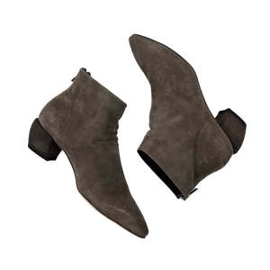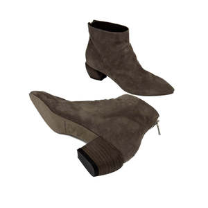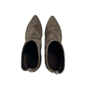 Handcrafted from very soft nappa leather in a perfectly versatile deep grey suede, these ankle boots are comfortable and easy to style with their flattering pointed toe shape. The tapered silhouette features a zip back fastening and a sturdy leather sole with a stacked midi heel. - 1.5" heel - Made in Italy