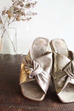 Handcrafted in Italy from leather, the Suki slides feature a soft, sculptural upper defined by a bold knotted strap. The design is set on a flat leather sole for effortless comfort and understated elegance. Made in Italy. Heel height: 20 mm Lining and insole: Leather Sole: 100% Leather Upper: 100% Leather