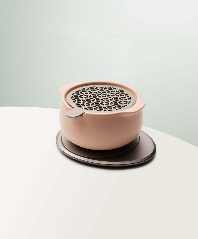 A fine ceramic self-heating diffuser that brings the art of aromatherapy into your home. Utilizing the same advanced electromagnetic technology as other OHOM ceramic products, the Jun transforms your space with the essence of tranquility. Elegantly designed with simplicity at its core, the Jun invites you to create a personalized aromatic sanctuary. Just a bit of water and a few drops of your chosen essential oil in the ceramic bowl are all thats required; as the water gently warms, it releases the essential oils full aromatic spectrum, infusing your environment with its healing and therapeutic properties. Specifications: - Handcrafted fine ceramic - Volume: 5 fl oz / 150 mL - Fast charge cell phone & AirPods - Works with other OHOM Unity products - Dishwasher safe Package includes: - Jun with lid - OHOM pad - Power adapter - USB Type C cable