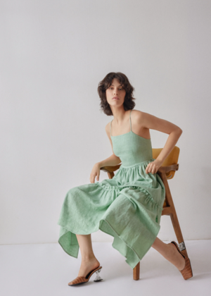 - Mint strappy midi dress - 100% linen - Peplum waist - Elasticated back waistband - Midi length dress SUSTAINABLY MADE - From OhSevenDays (Istanbul Turkey) - OhSevenDays only use materials from deadstock fabric rolls - OhSevenDays works with a factory that is fully audited, fair trading and worker friendly company that is a member of the ethical trade membership organization Sedex - Sustainable Values: #3: Sustainable materials, #5: No waste, #7: Safe, livable, dignified employment, #8: Longer lifetimes, #9: No animal cruelty SUSTAINABLE CARE - Machine wash under 30 C - Maximum ironing temperature is 200 C - Dry flat - Do not bleach