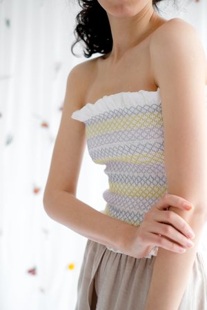 Linen elasticated tube top - Model is 180cm, size small, wearing a Small - Sizes are Small Medium Large - Made from 100% Linen. This fabric was sourced from Zeytinburnu in Istanbul. - Cool hand wash. - Made in Istanbul Turkey - Questions about fit? Email info@ohsevendays.com Our Tuesday Tube Top is our multi-purpose summer staple. Features a braided elasticated print detail. Made from run-off linen, the strapless super-stretchy top is perfect for post-beach relaxation and sunburn respite.