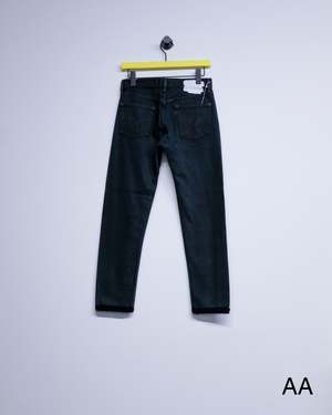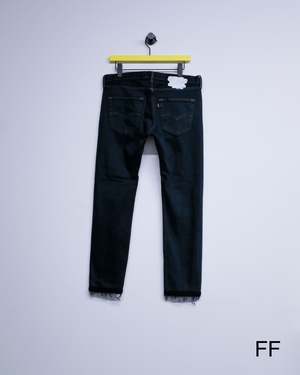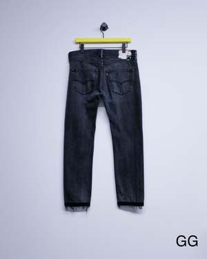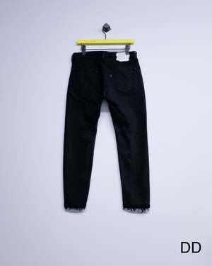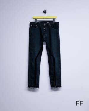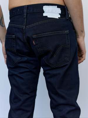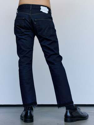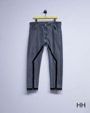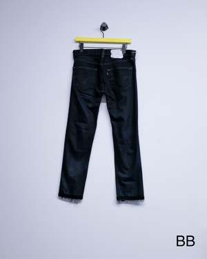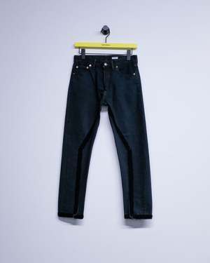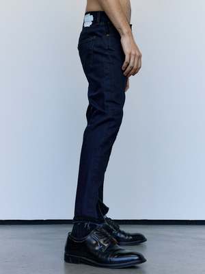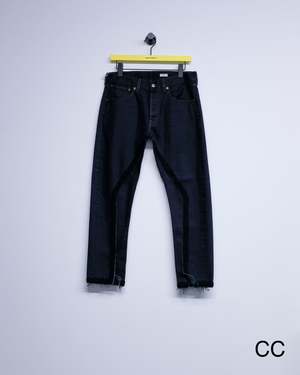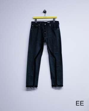 Slim straight reworked jeans with crochet stitch detailing. Each pair is unique in wash and finish. 100% Cotton.