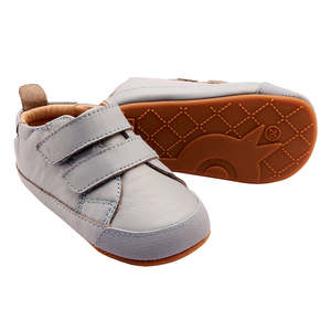 Classic leather sneakers for babies with a removable antibacterial, absorbent, and breathable footbed. Features a flexible natural rubber non-slip outsole, two velcro straps across the foot, and elastic at the heel for a secure fit. Made from 100% soft leather with a padded leather insole for ultimate comfort, fit, and flexibility. Spot clean only. 0104RT
