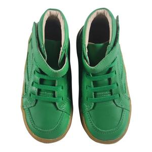 Old Soles was formed in 2008 when Australian designer Vicki Lever launched her range of fashion inspired "pre-walker" and "first steps" leather baby shoes. The brand has grown to include shoes for older children too, with the philosophy that style, comfort and protection for growing feet can all be upheld together. The Old Soles Star Jumper Shoe in Green is a high top sneaker with a faux lace up look that is elasticated for easy on and off access, as well as a hook and loop strap for added security. The premium leather upper, soft leather lining, padded footbed and flexible rubber outsole make these shoes incredible comfortable and easy to wear. Colour: Green