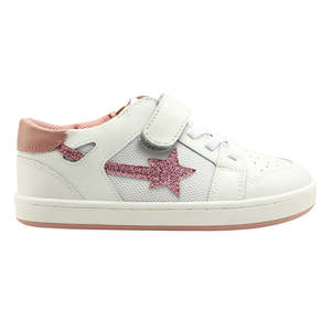Old Soles was formed in 2008 when Australian designer Vicki Lever launched her range of fashion-inspired pre-walker and first-steps leather baby shoes. All shoes are made of 100% soft leather with a padded leather insole and elastic back for comfort, fit, and flexibility. - Sneakers - 100% natural leather upper - Pink star details - Removable padded insole for comfort - Flexible rubber outsole - Pull-on style with elastic laces - Velcro straps across the foot Spot clean only. 1045 Type: Shoes