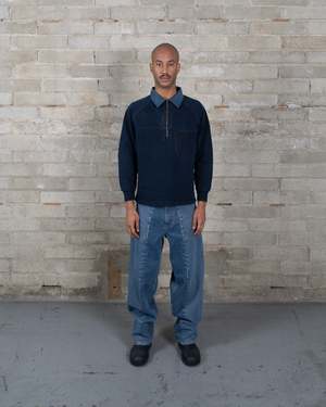 100% organic Japanese denim. High-rise with side seams shifted to the front. Front and back patch pockets. Naturally dyed with charcoal and wood extract. Sewn in California. Shot in size S on a model who is 5'9" tall.