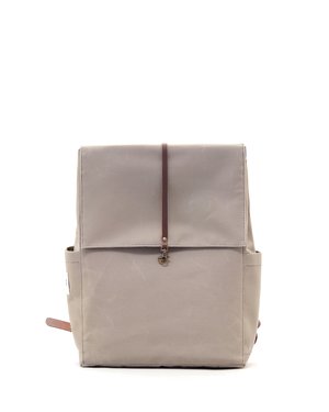 Holden backpack made of water and oil repellent canvas with natural leather details. - stone color - Two side pockets - Divider on the back - Interior with space for a laptop up to 17" + Pocket - Zip pocket inside lid - Adjustable natural leather straps - Inner padding - Click buttons on the sides *** This fabric is primed with a resin coating, which is what gives it its waterproof properties. When folding it the first few times, slight marks appear that become homogenized with use. In some colors such as Stone or Gray you can see more. Fabric: 100% Tarpaulin Straps: Natural leather Made in Portugal Height: 40 cm., Width: 30 cm., Depth: 12 cm.