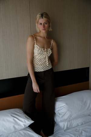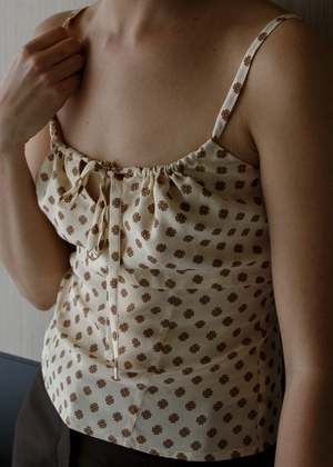 Empire silhouette camisole in crepe de chine silk. Drawcord neckline, with centre front keyhole and adjustable straps, hip-grazing hemline, and inverted centre back invisible zip. Empire line silhouette Straight cut body Inverted centre back invisible zipper Adjustable drawcord bust and straps Keyhole at centre front neckline Main Crepe de chine 100% mulberry silk Care Silk is antibacterial and does not require frequent washing. Spot clean with a dry microfibre cloth. Steam iron between wears to refresh. When necessary, cold hand wash with delicate detergent. For stains, take it to your local dry cleaner.