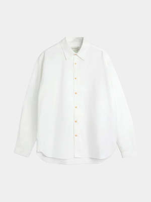 The Atlanta long-sleeve shirt features an oversized fit with a spear collar and front patch pocket. This version is crafted from 100% organic cotton and is the perfect casual white shirt for spring and summer. - Fabric composition: 100% organic cotton - Made in Portugal - Oversized-fit, casual shirt - Spear collar detail and front patch pocket - Curved hem detail with contrast gusset - Gentle wash at 30, tumble dry on low heat, medium iron - Model wears a size Medium - Size Medium corresponds with 128 cm chest, 51 cm across shoulder, 63.5 cm sleeve length