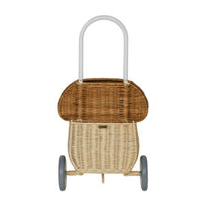 Olli Ella is characterized by their vintage inspired pieces and focus on sustainable and natural materials. - Whimsical mushroom shaped luggy - Handwoven natural rattan in a two toned colour-way - Great for play, everyday use and storage too - Lightweight metal frame for strength and durability - Removable handle - Some assembly required - Suitable for ages 3+ Dimensions: 23 cm x 16 cm x 14.5 cm OEKBAS-MLG-NA-O