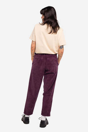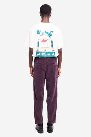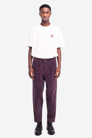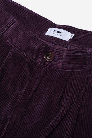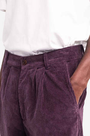 The Swing Pant from OLOW is a versatile option for both casual days and dressed-up nights. These tapered-cut trousers feature pleating at the waist, side slant pockets, natural corozo buttons, and a YKK zipper. Inspired by early 20th-century swing trousers, they offer a relaxed yet refined silhouette. Made from 100% cotton velvet woven in France. Made in Portugal.