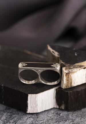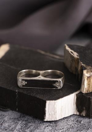 - Recycled sterling silver, ebony. - Shank: 1/4". - Detail length: 1 1/2". Height: 3/8". - Designed in Paris, handcrafted in Niger.