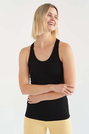 The Bamboo Scoop Neck Tank Top by On/off essentials is crafted from premium bamboo fabric for exceptional comfort and breathability. This racerback tank features a flattering scoop neck design and is hypoallergenic for irritation-free wear. Bamboo's natural moisture-wicking and odor-resistant properties keep you dry and fresh throughout the day. The fabric regulates temperature to keep you cool in heat and cozy in cooler conditions. Durable and flexible construction ensures the tank maintains its shape while allowing unrestricted movement. Sustainable and eco-friendly, this tank top is perfect for work, workouts, or casual wear.