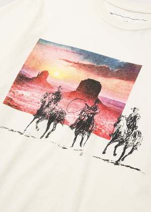 The Day The Rains Came Tee in Vintage White from One Of These Days. A premium everyday tee made from fabric knit in the USA and cut and sewn in the USA. Finished with a vintage wash and pre-shrunk for a consistent fit from the first wear. Features - Fabric knit in the USA - Cut and sewn in the USA - Vintage wash - Pre-shrunk