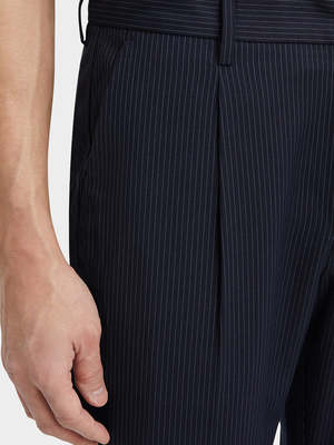 Dress with sophisticated ease in our Niles Trousers. The single pleat offers a classic cut that is perfect for any business dinner or cocktail party. The ease on the seat and tapered legs allows for comfort and style to be present. Paired with a blazer, you'll look effortlessly smart. The Niles Trousers will have you staying timeless through the seasons. - 68% Polyethylene, 29% Viscose, 3% SP - Single Pleat - Classic Stripe Pattern - Semi-Formal