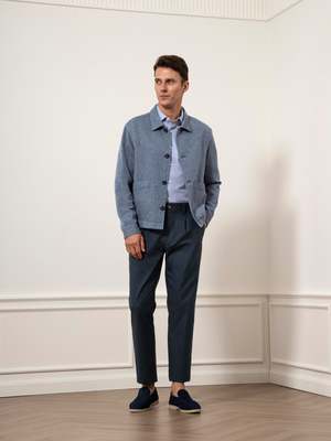 The Hawthorn Hopsack Summer Jacket brings unexpected luxury to casual wear. Crafted from premium linen and cotton blended hopsack, this refined short jacket features a turn-down collar and patch pockets with a breathable, textured hand-feel and subtle drape. Transition effortlessly from casual daywear to smart-casual evenings with a piece that delivers distinguished style and confident comfort. Details - Category: Men's button-up jacket / layering - Fit: Regular fit - Fabric: 78% cotton / 22% linen - Weight: Mid weight - Occasion: Light casual layering for evenings - Care: Hand wash Size Guide (SXL) - Length: 25 1/8" (S), 26" (M), 27 1/8" (L), 28 1/4" (XL) - Chest: 42 3/4" (S), 44 3/4" (M), 47 1/4" (L), 49 3/4" (XL) - Sleeve: 24" (S), 24 5/8" (M), 25 1/4" (L), 25 7/8" (XL)