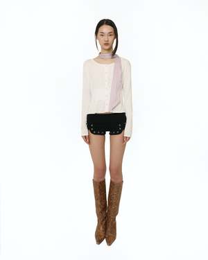 Made from the softest bamboo viscose that was knit in Los Angeles. This top has a relaxed fit that sits away from the body, with a ribbed waist for gentle shape. Daisy shaped buttons adorn the front of this top and can be worn as unbuttoned as you please. Pre-washed and pre-shrunk. Top is cinched at waist but meant to fit loose and away from the body. Fits true to size. Model is wearing XS. Care: Machine wash with like colors. Tumble dry low.
