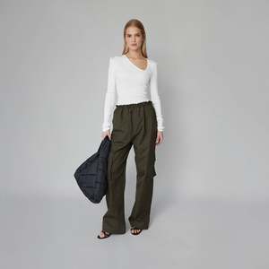 The Maud Cargo Pants by Opera Sport channel a refined utilitarian aesthetic. Crafted from 100% organic cotton, they feature a relaxed straight-leg silhouette with a high-rise, elasticated waist for a comfortable yet structured fit. The design is finished with side cargo pockets and subtle front patch pockets, offering both practicality and modern edge. The model is 170 cm and wears a size S.