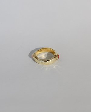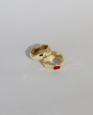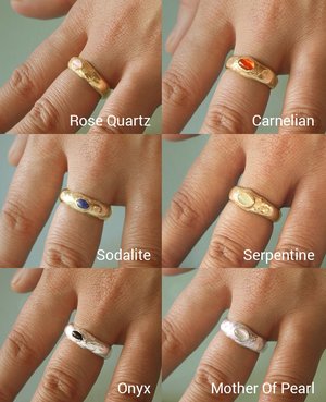 A ring with two faces, to best match the mood of the moment. The band is textured, set with two natural stones of your choice. Take your pick! Material brass Made to order