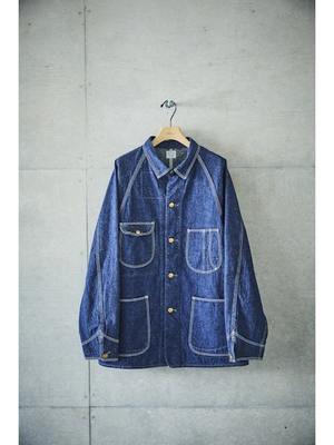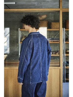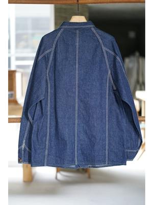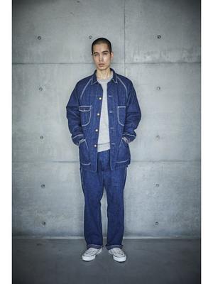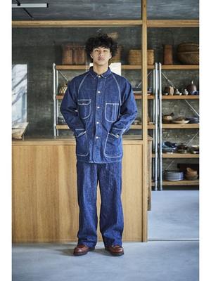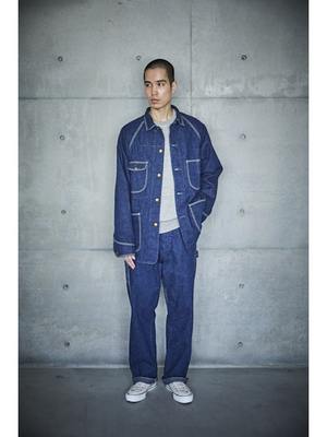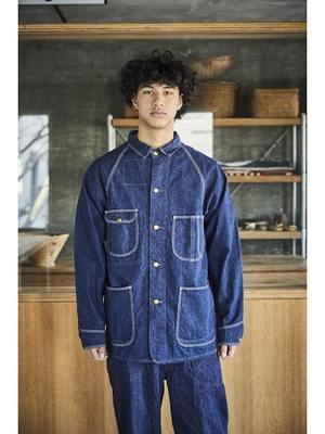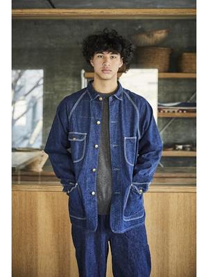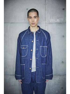 Inspired by American workwear coveralls from the early 19th century, particularly those from the 1950s. Features raglan sleeves, lap seams, and contoured patch pockets. Made with original 9-ounce denim that ages and personalizes with wear and washing. Available in both denim one-wash and denim used look variations.