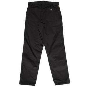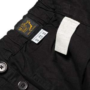 Orslow's French Work Pant is a wide leg trouser that features a subtle taper, cut from a cotton herringbone twill. Between the bevy of pockets and the soft hand of the herringbone twill, it's an easy-wearing pant suited for both leisure and work. - Herringbone twill fabric - Elasticated waistband - Button fly - Front slant pockets - Side utility pocket - Rear pockets, one with button closure - Style number: 03-5000-61 - 100% Cotton - Made in Japan