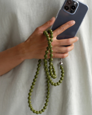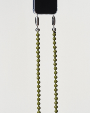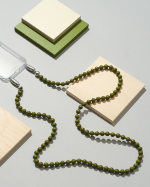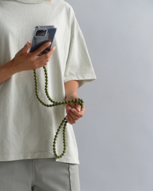 Painted and polished natural wood beads woven together with braided cord. Length: 45". Long, crossbody style. 10mm wood bead, 100% nylon cord, plated copper / alloy hardware. Weight: 50g. Take your regular activities into consideration when wearing your OSSA. Please handle with care. OSSA does not guarantee the integrity of your smartphone. We recommend cleaning your case and strap with a microfiber cloth.