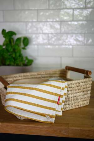 These tea towels have been handloomed at The Salvation Armys production center in Jashore, Bangladesh. Using large manual looms, our artisans produce beautiful, high-quality textiles. Traditional looming techniques have been fine-tuned and passed through several generations. Through good working conditions and fair wages, our goal is to contribute to economic empowerment for the weavers and their families.