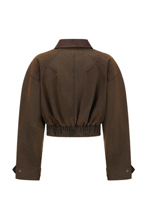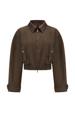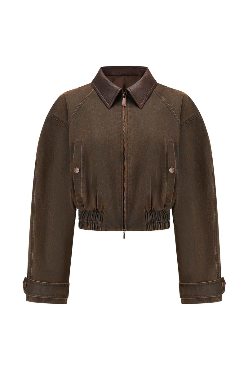 Oude Waag Retro Pilot Jacket in Brown. Long sleeves. Zip closure at front. Two side pockets with pressure button closure. Elasticated at waist. Composition: Cotton.