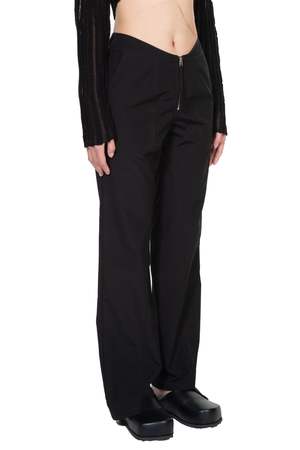 OUDE WAAG strikes a balance between Asian aesthetics and Western cutting. It is at the heart of designers philosophy: celebrating the power of women, yet simultaneously critiquing the ongoing objectification and idealisation of the body as you can see with the Slim Fit Pants. Slim leg. Zip closure at front. Two side pocket. Asymmetric finish at bottom Colour: Black. Composition: Poly.