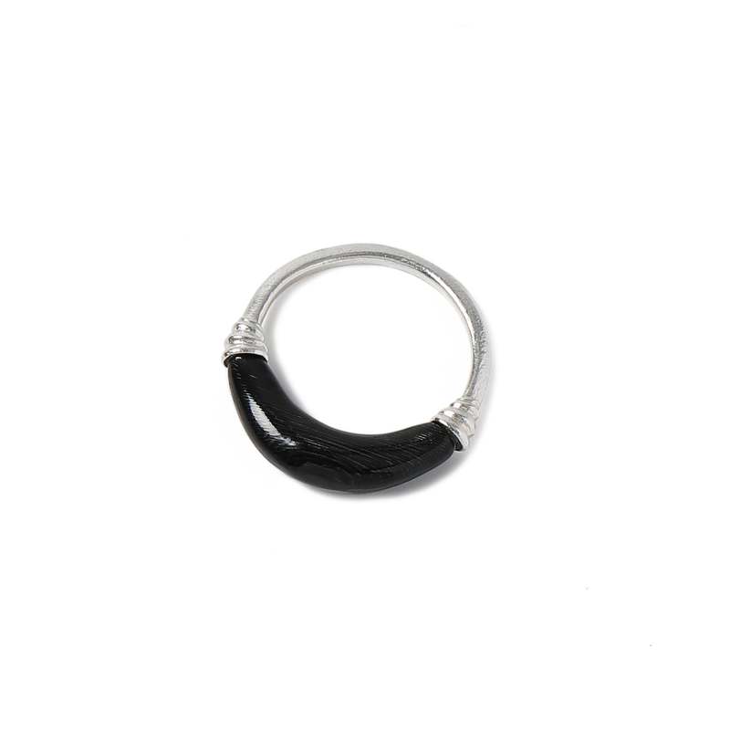 The Ox Horn Crescent Ring by Oude Waag is crafted from 925 sterling silver and paneled with natural black and white horn. Each piece of horn is hand-polished for a smooth, warm finish with delicate details. Naturally occurring patterns make every piece unique, while the fluid lines and sculptural form create a subtle statement for daily wear. Color: Black. Composition: Ox Horn / Silver.